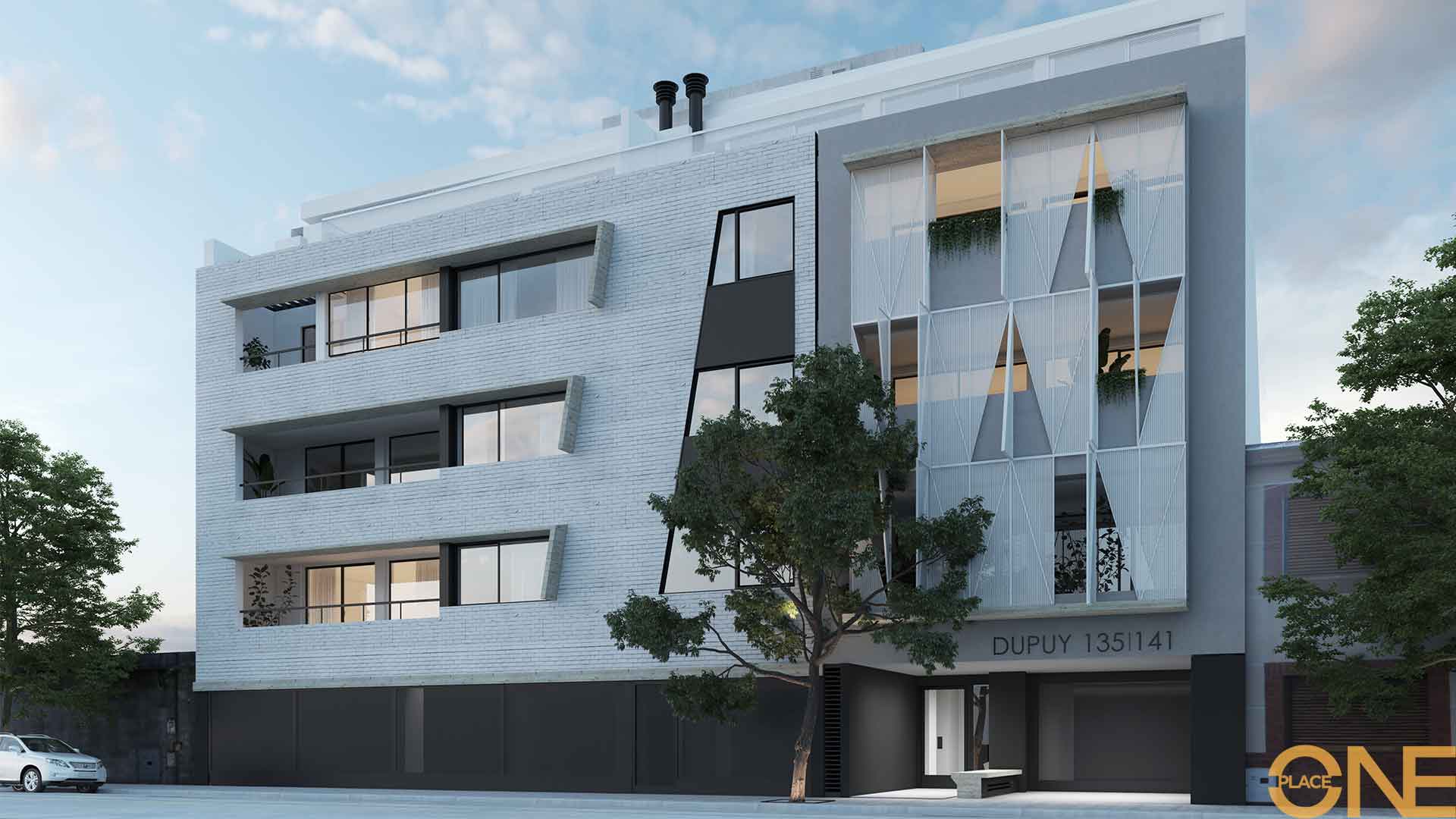 Edificio entre medianeras que constará de planta baja y tres pisos más un piso retirado. En la planta baja se ubicará el hall de entrada y las cocheras. En las plantas 1º a 4º piso, se desarrollan departamentos de 2 y 3 ambientes.