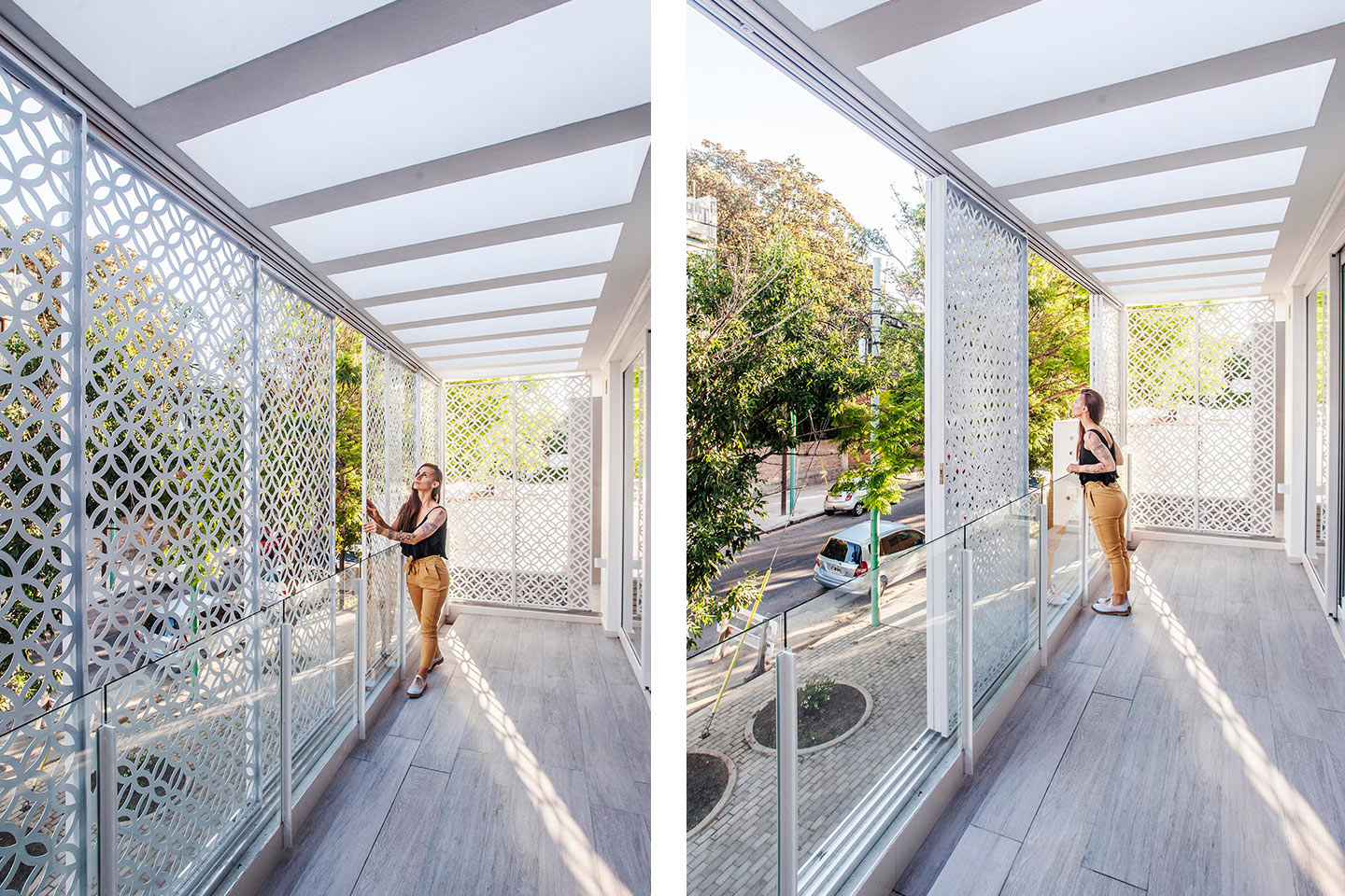 Aberturas exteriores: Hojas de aluminio anodizado color, línea Módena de Aluar.